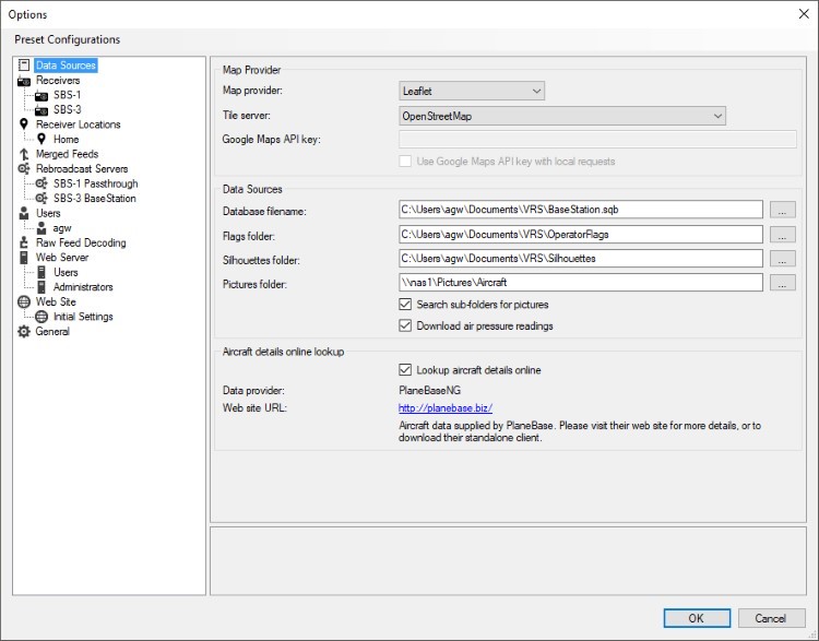 This is the full path to the SQLite database that either BaseStation or the Database Writer Plugin updates with information about the aircraft that it sees. You may leave this field blank but if you do then the reports will be empty and information that is not transmitted by the aircraft (such as the registration, the type of aircraft, the operator of the aircraft and so on) will not be displayed.Flags folder
