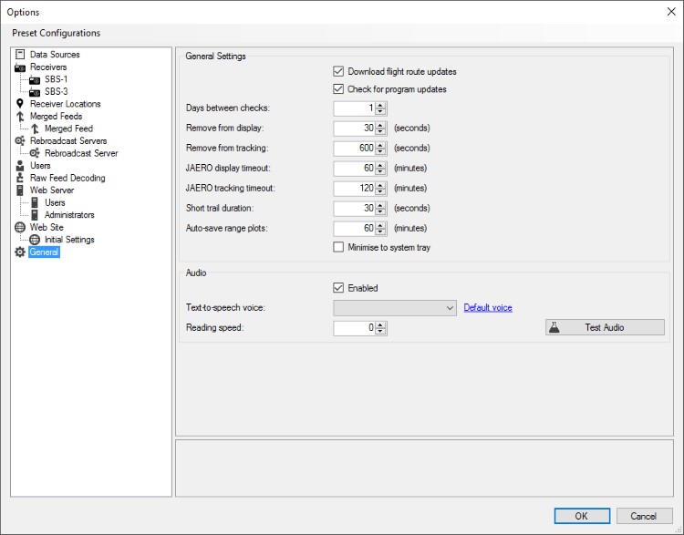 This setting controls whether you want to enable the audio features of the web site. The web site can call out details of selected aircraft.